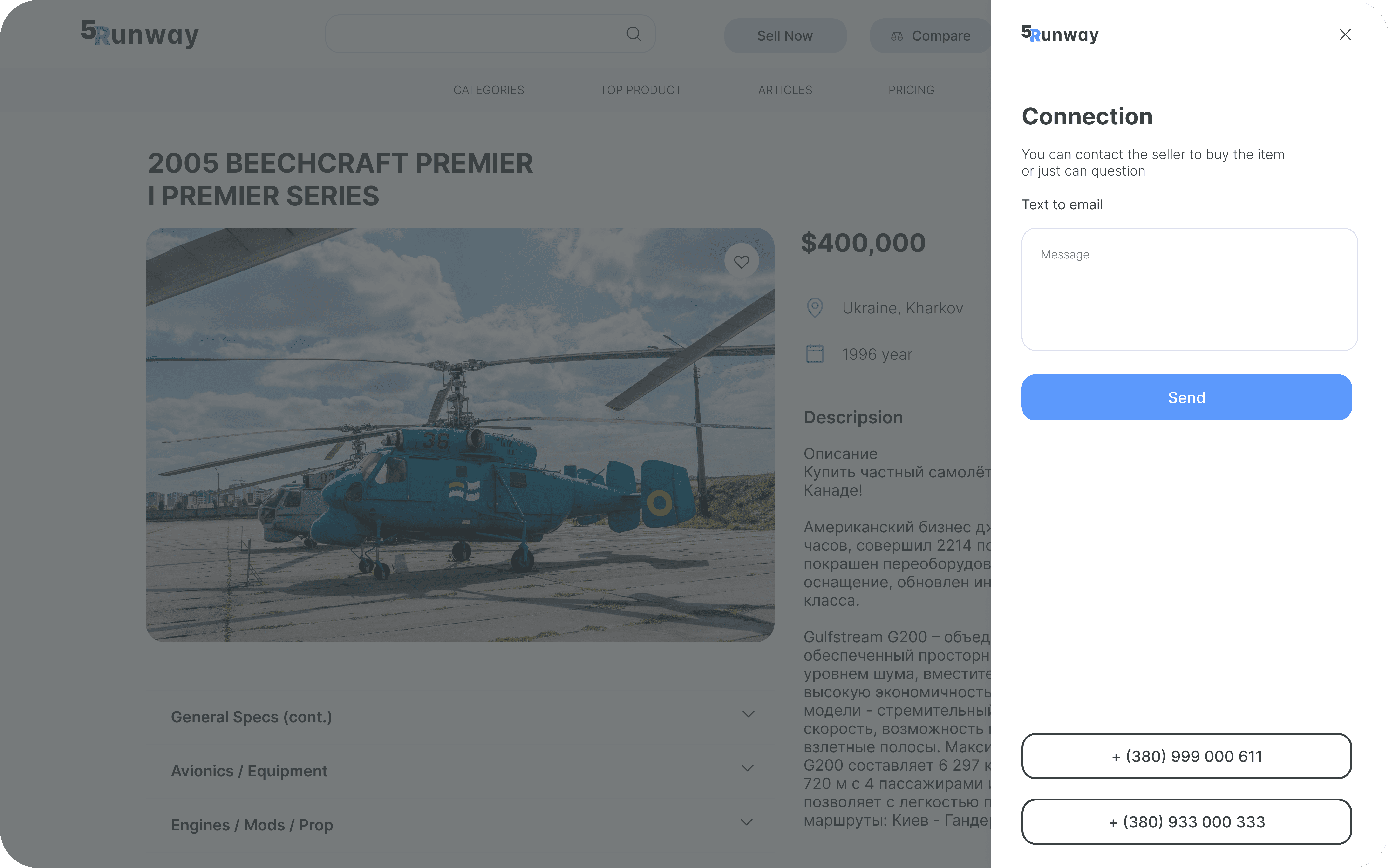 The client needed an aircraft marketplace that could handle high-value listings, long decision cycles, and strict information requirements specific to aviation sales. The platform should cover two flows: advanced aircraft search and comparison for buyers, and a controlled, subscription-based listing process for sellers with multi-step data entry. Publishing, managing, and contacting actions had to be clear and traceable.